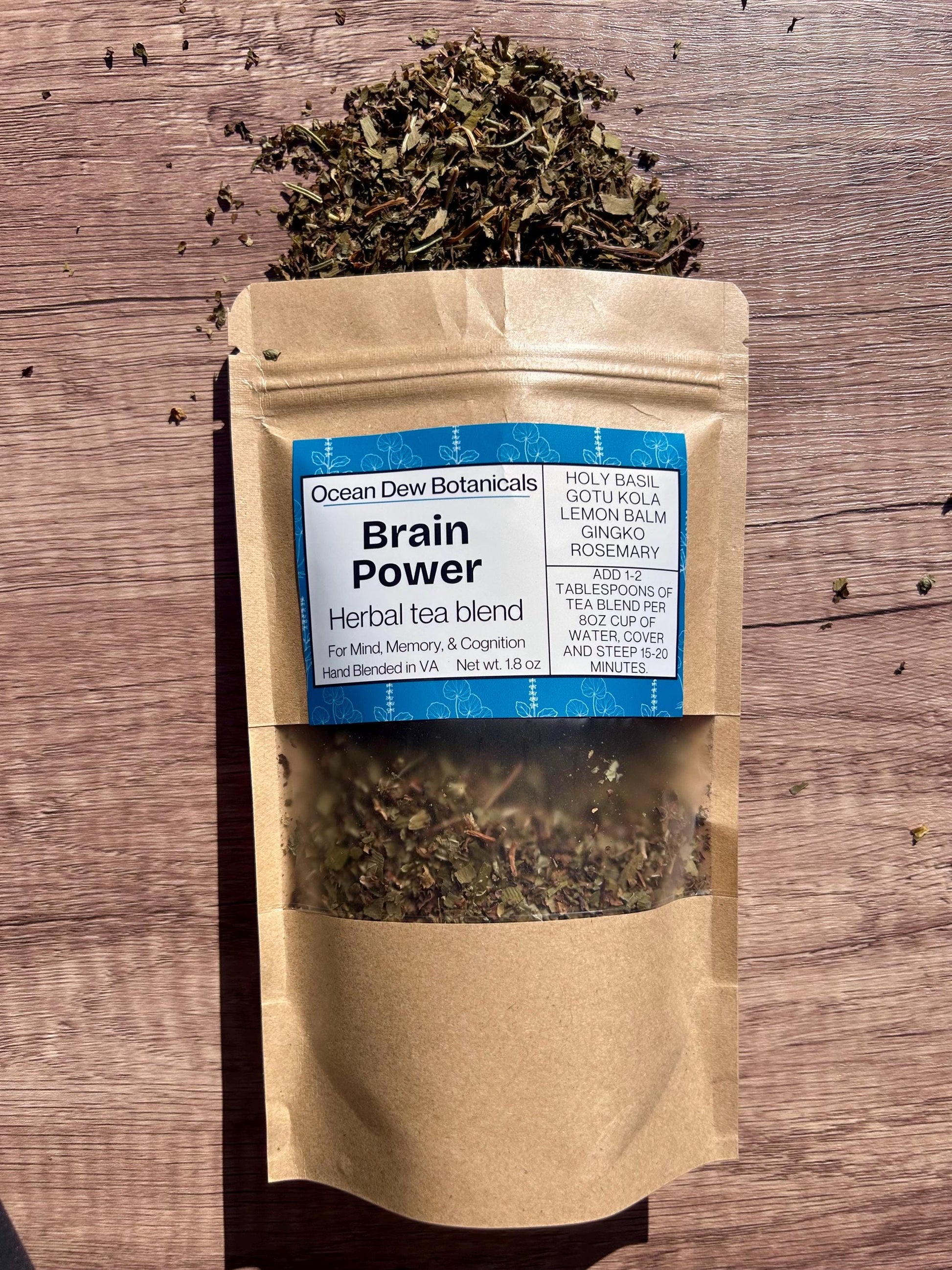 Get out of that foggy state of mind and into something more productive and inspired with this Brain Power tea blend. Created to awaken your inner clarity, this mix brings together herbs long revered for their support of memory, focus, and balanced mood.
