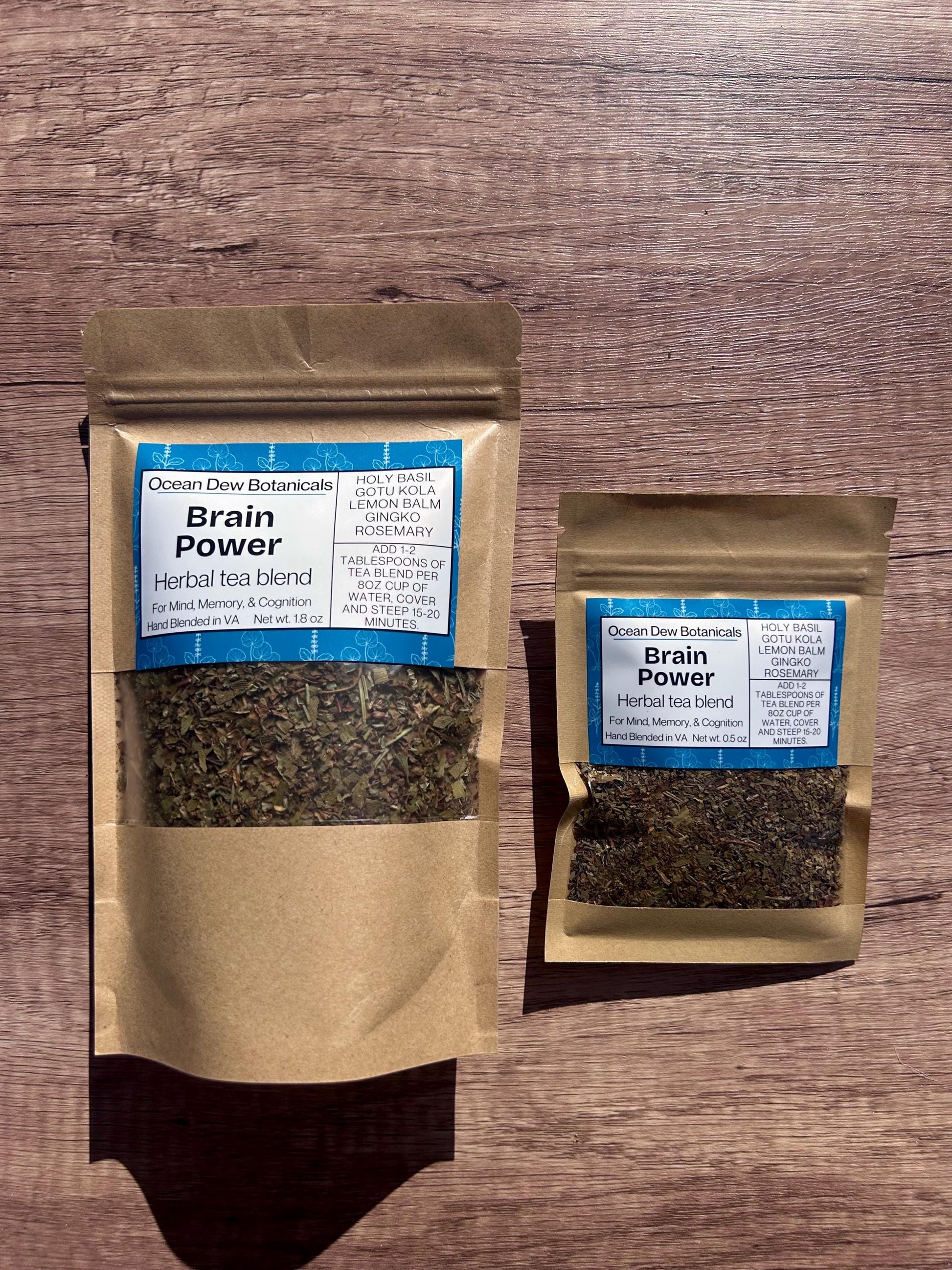 Net Weight of Herbs: 1.8 oz in large bag, 0.5 oz in small bag