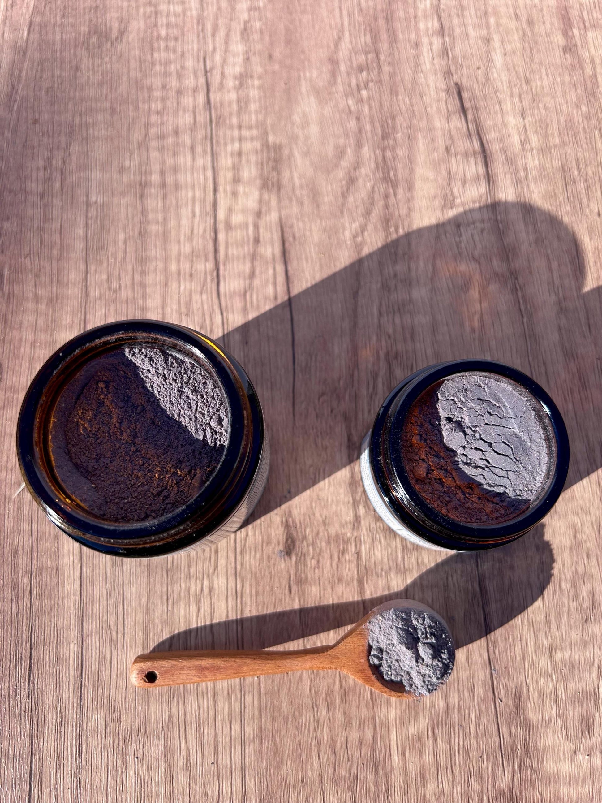 This package contains: reusable amber glass jar filled with powder, reusable mini wooden spoon