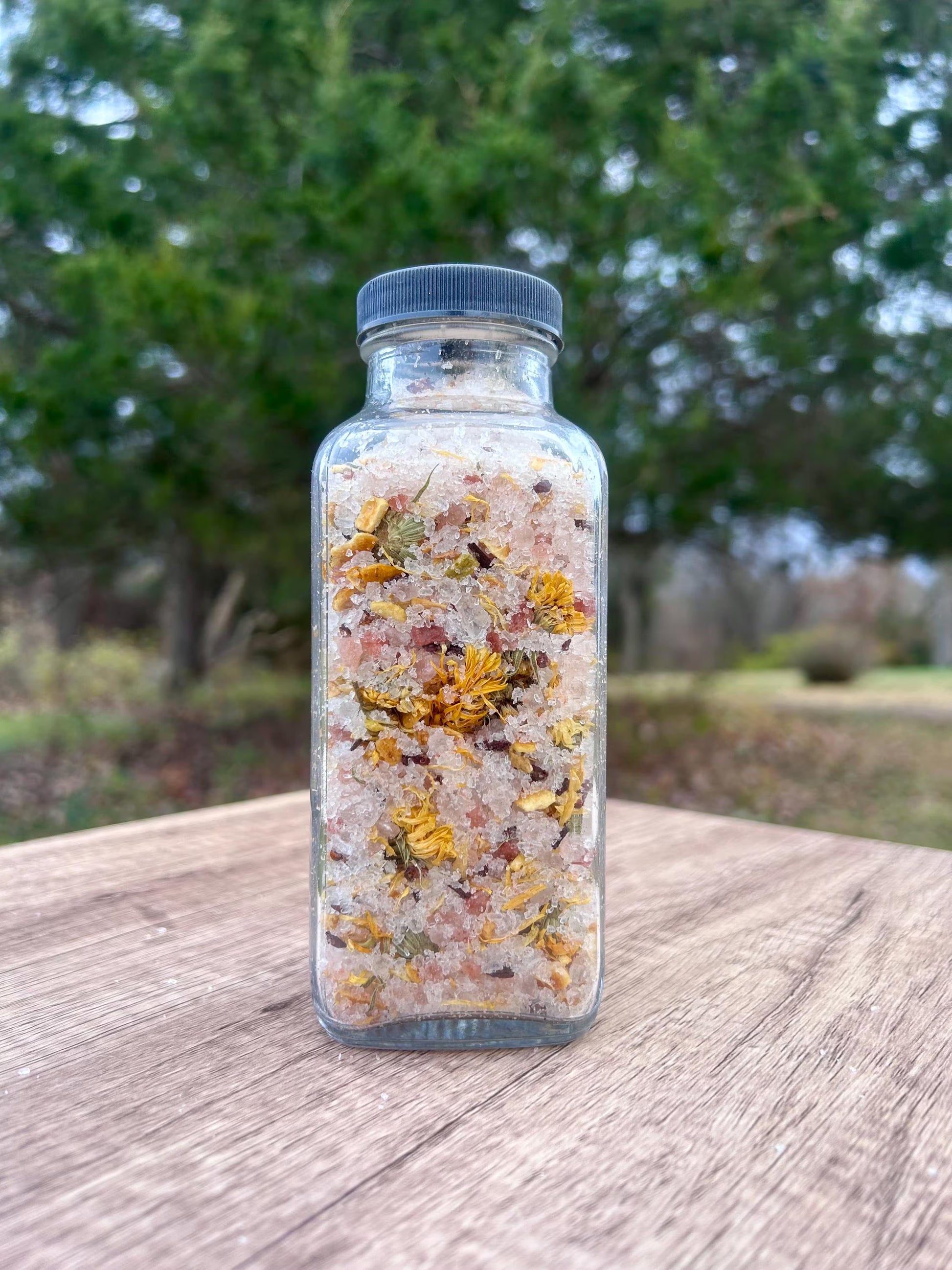 Ingredients: Epsom Salt, Himalayan Salt, Calendula*, Cinnamon, Ginger*, Orange Peel*, Jojoba Oil*, Clove Essential Oil*, Allspice Essential Oil