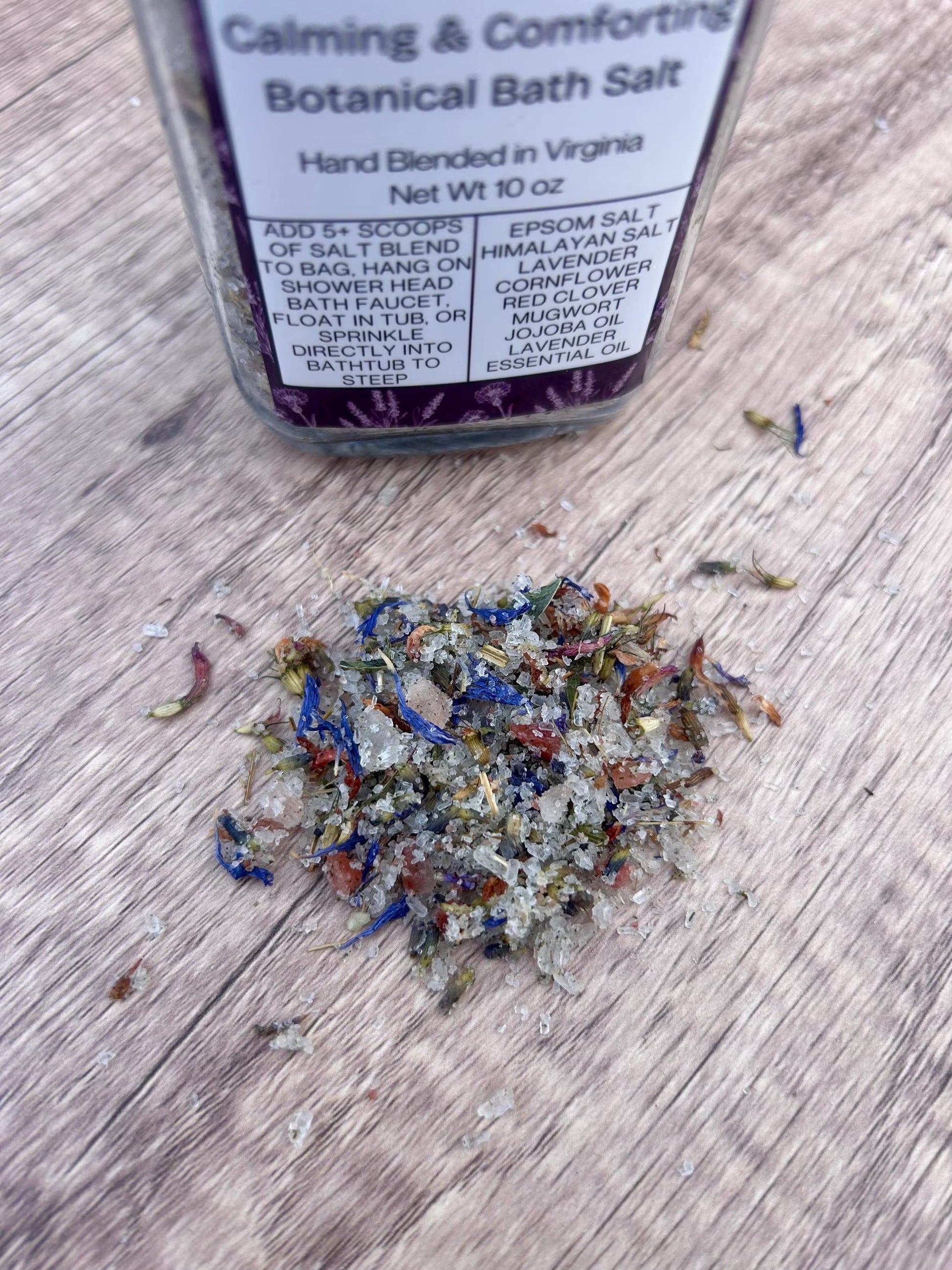 Ingredients: Epsom Salt, Himalayan Salt, Lavender, Corn Flower*, Red Clover*, Mugwort*, Jojoba Oil*, Lavender Essential Oil*