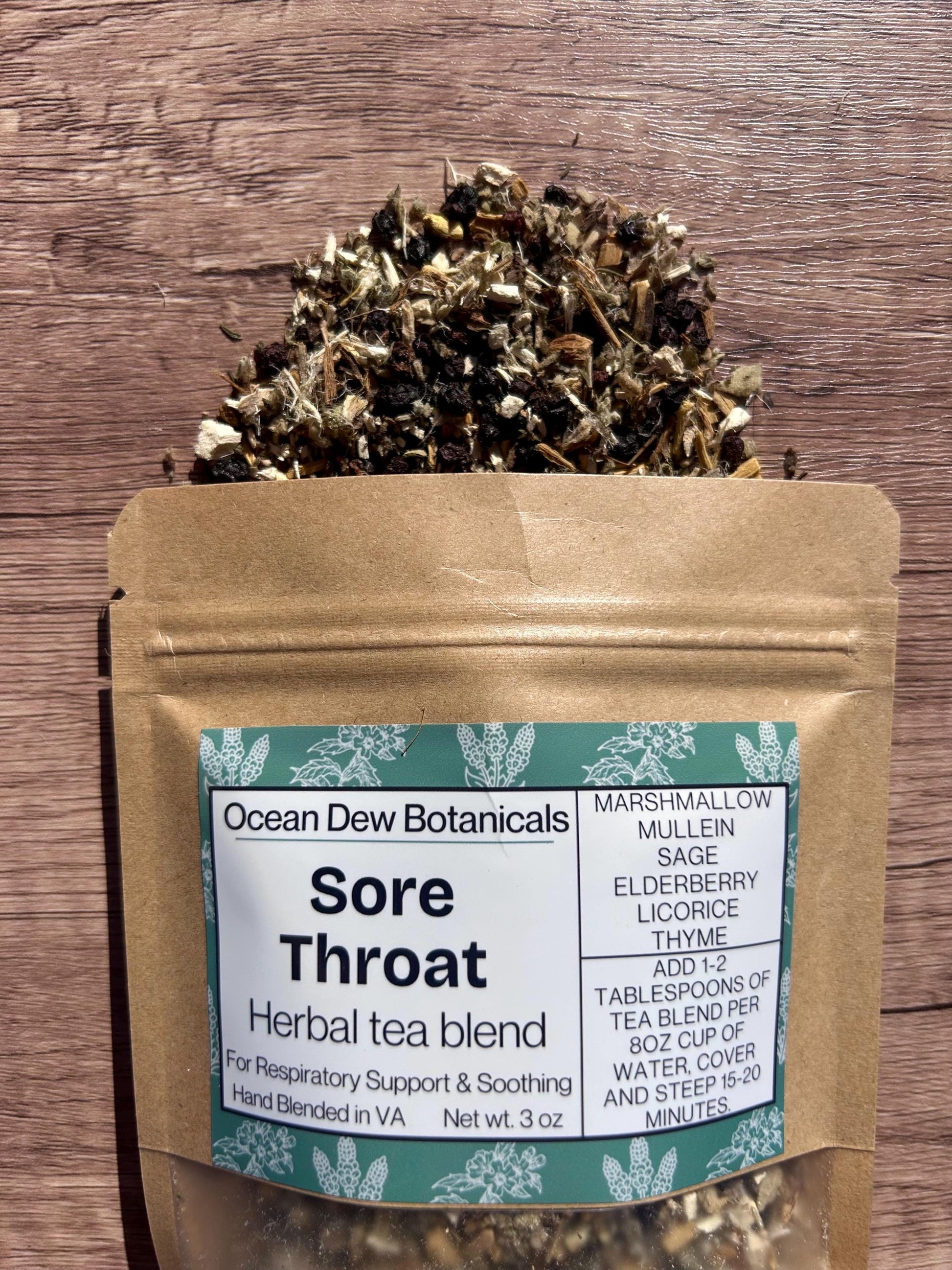 Ingredients: Marshmallow Root*, Mullein*, Sage*, Elderberry*, Licorice Root*, Thyme*