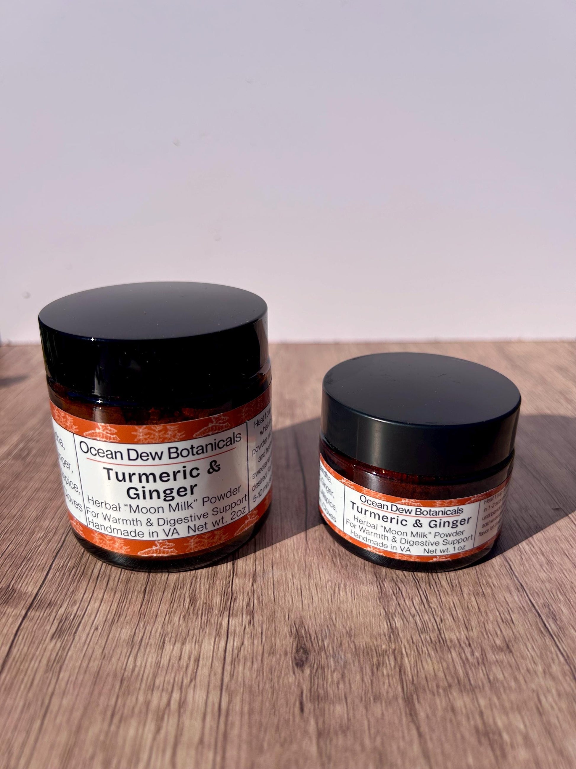 Bring warmth, balance, and vitality to your day with this Turmeric & Ginger Powder Blend—a golden, spiced elixir crafted to support the body’s natural resilience and flow. Combining the grounding strength of Ashwagandha with the anti-inflammatory power of Turmeric and Ginger, this blend nourishes from the inside out, supporting energy, digestion, and overall wellness. Warming spices—Cinnamon, Cardamom, Cloves, and Allspice—stimulate circulation, support immunity, and create a comforting, aromatic cup with deep earthy sweetness. Together, these herbs form a powerful, adaptogenic blend that promotes vitality, soothes inflammation, and restores balance to body and mind.